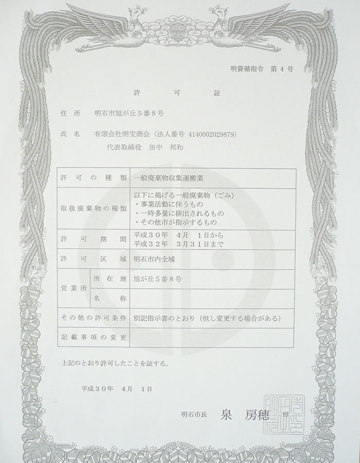 兵庫県産業廃棄物収集運搬業 第02804023282号